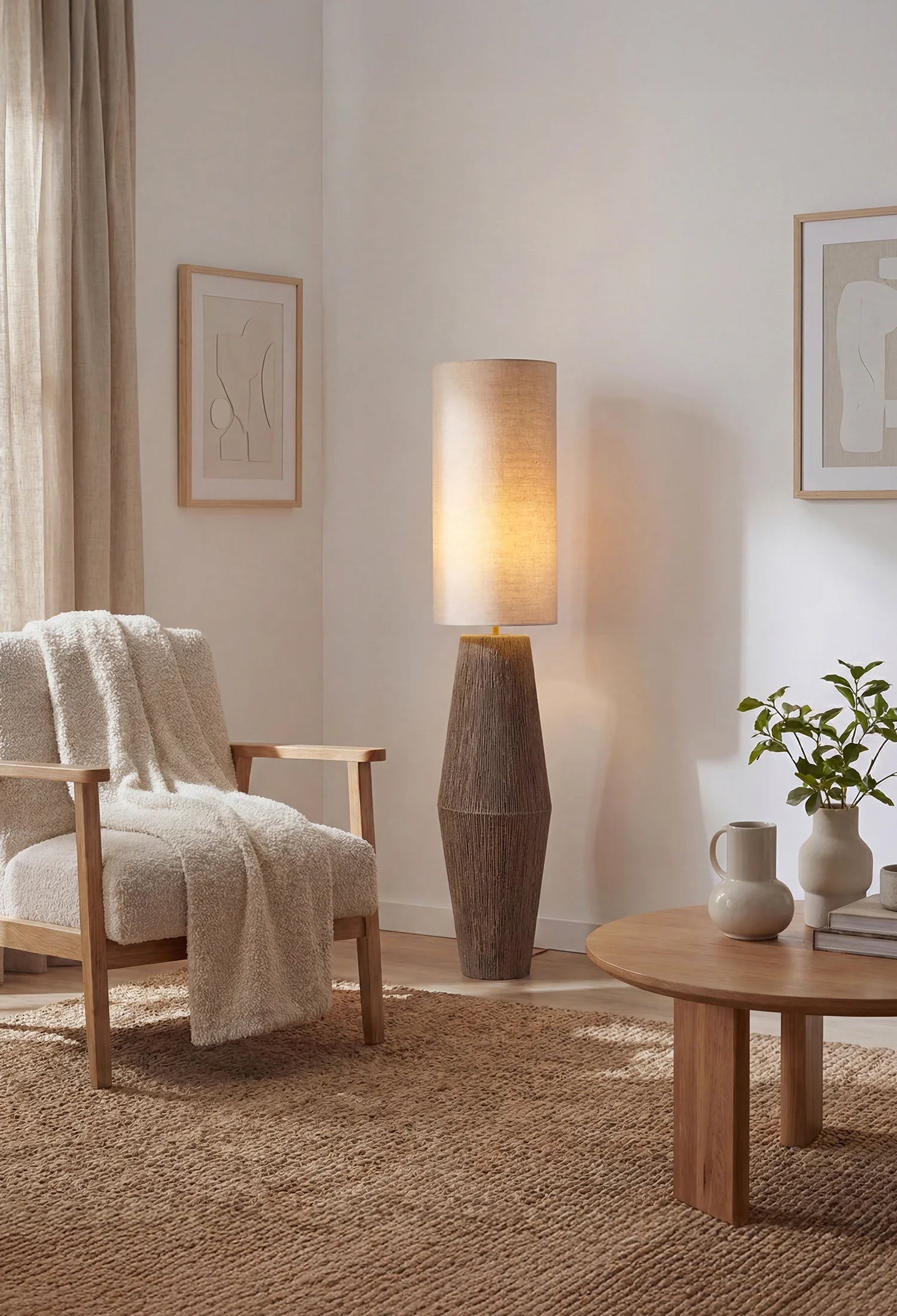 Elise Rustic Woven Rope Base Linen Shade Floor Lamp